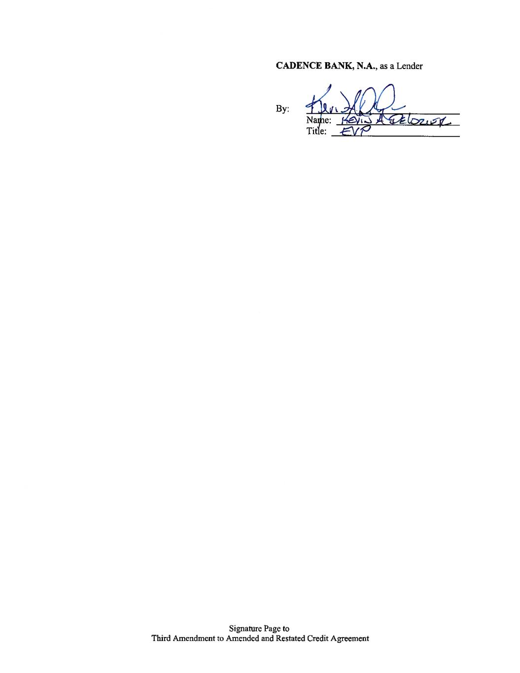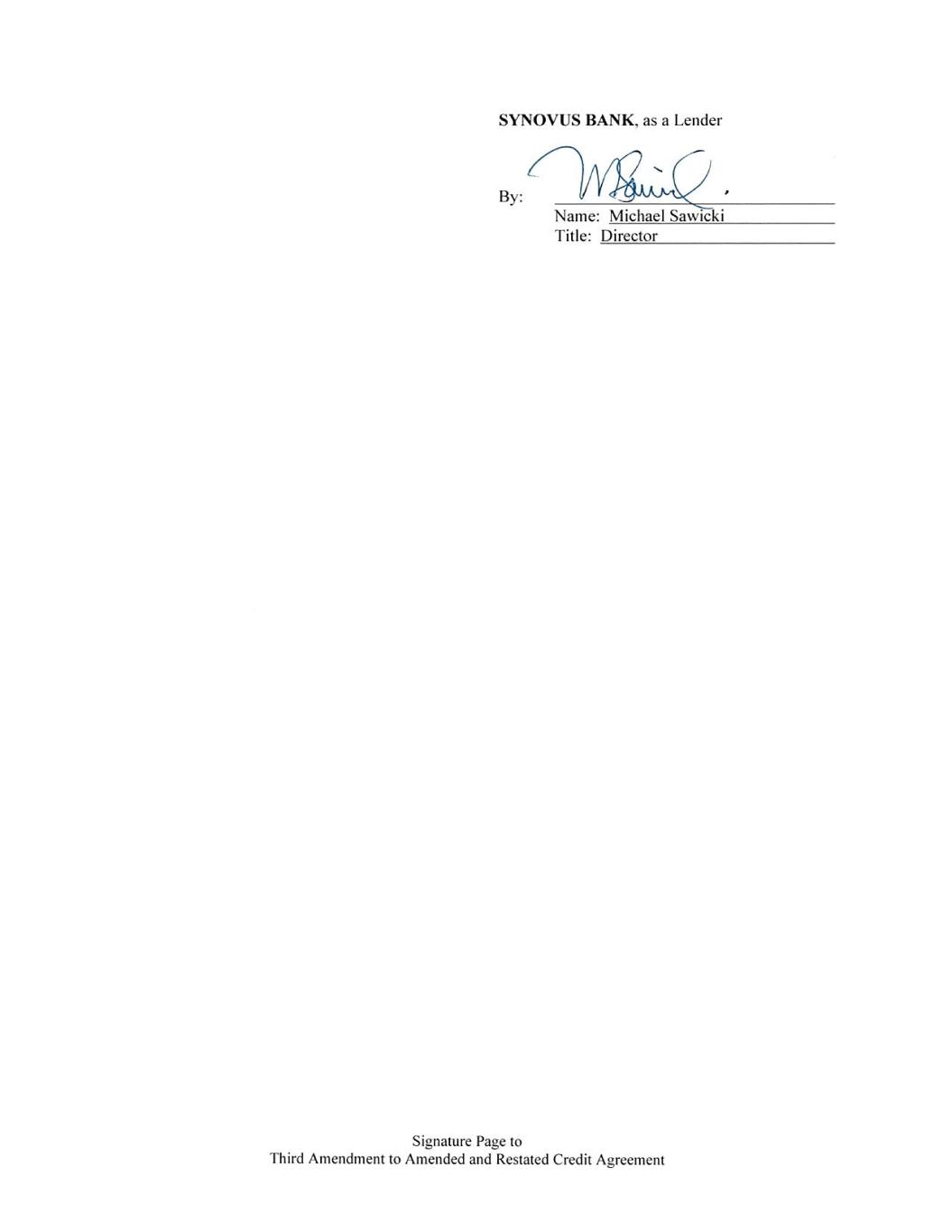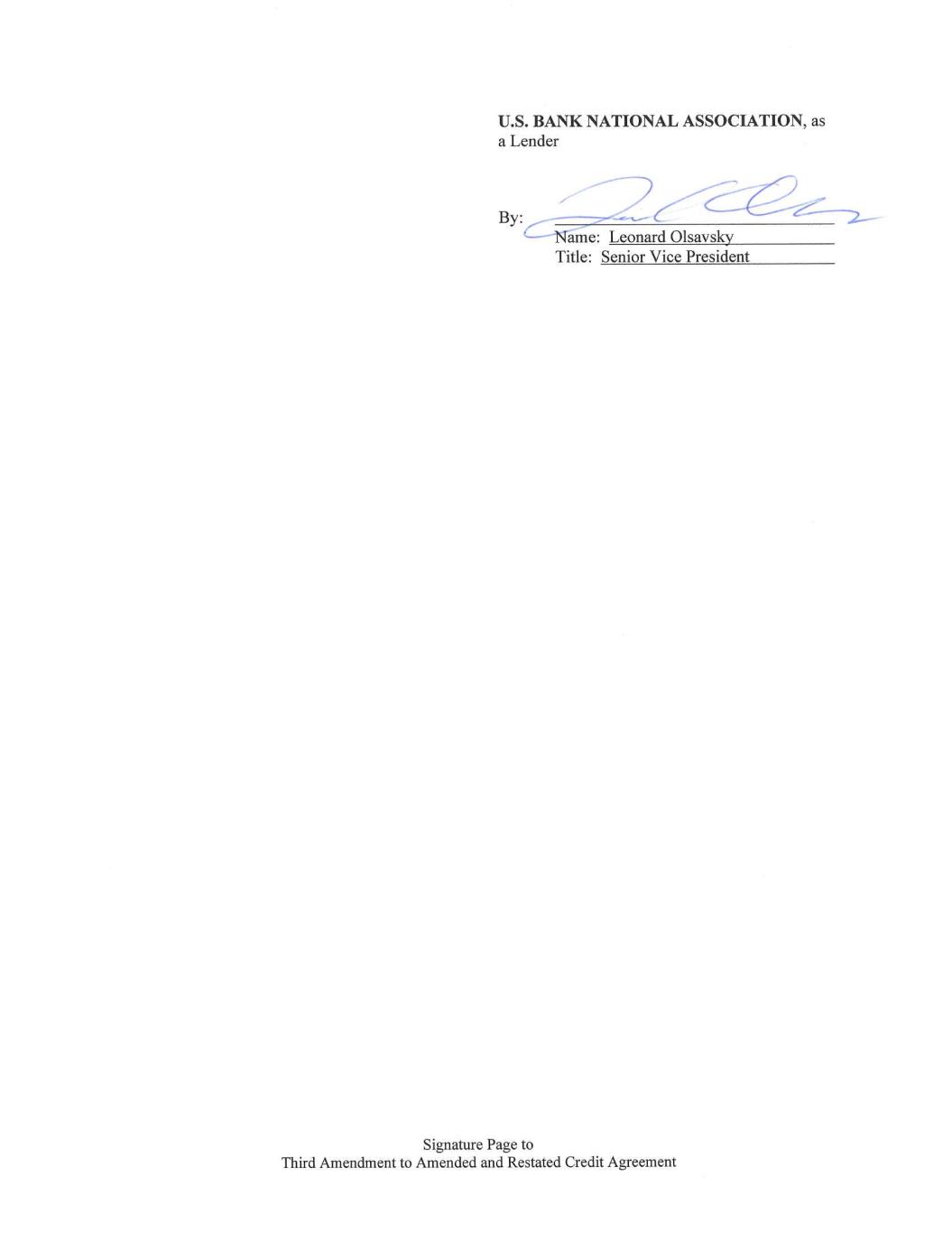 4889-2662-9997 v.6 4 (d) The amendments set forth herein are limited precisely as written and shall not be deemed: (i) to be a consent under or waiver of any other term or condition in the Credit Agreement or any of the other Loan Documents; or (ii) to prejudice any right or rights which Administrative Agent and Lenders now have or may have in the future under, or in connection with the Credit Agreement, as amended hereby, the other Loan Documents or any of the other documents referred to herein or therein. (e) This Amendment may be in the form of an Electronic Record (and may be delivered by e- mail or facsimile) and may be executed using Electronic Signatures (including, without limitation, facsimile and .pdf) and shall be considered an original, and shall have the same legal effect, validity and enforceability as a paper record. This Amendment may be executed in as many counterparts as necessary or convenient, including both paper and electronic counterparts, but all such counterparts are one and the same letter agreement. For the avoidance of doubt, the authorization under this paragraph may include, without limitation, use or acceptance by Bank of America, N.A. of a manually signed paper Communication which has been converted into electronic form (such as scanned into pdf format), or an electronically signed Communication converted into another format, for transmission, delivery and/or retention. For purposes hereof, (a) “Electronic Record” and “Electronic Signature” shall have the meanings assigned to them, respectively, by 15 USC §7006, as it may be amended from time to time and (b) “Communication” shall mean this Amendment and any document, amendment, approval, consent, information, notice, certificate, request, statement, disclosure or authorization related to this Amendment. [Signature Pages Follow.]