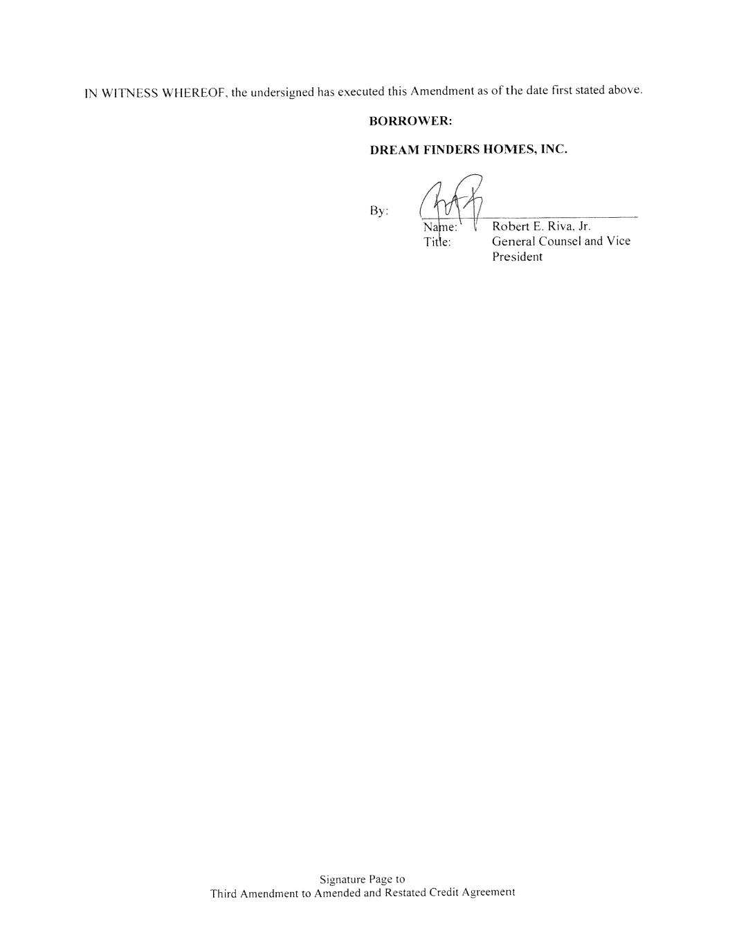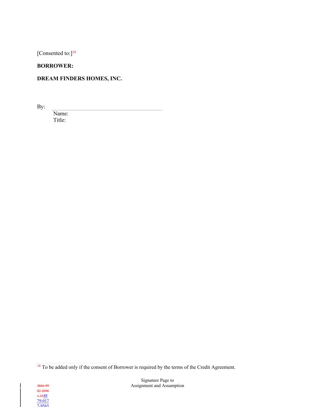 4866-99 02-2696 v.1548 79-017 7-9565 Signature Page to Assignment and Assumption BORROWER: Name: DREAM FINDERS HOMES, INC. Title: [Consented to:]18 By: 18 To be added only if the consent of Borrower is required by the terms of the Credit Agreement.