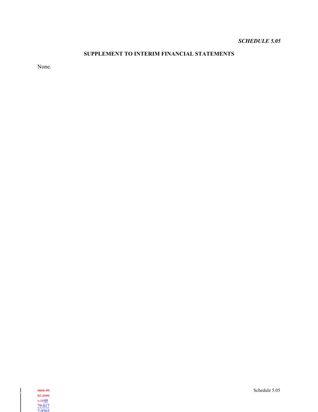 4866-99 02-2696 v.1548 79-017 7-9565 Schedule 5.05 SCHEDULE 5.05 SUPPLEMENT TO INTERIM FINANCIAL STATEMENTS None.
