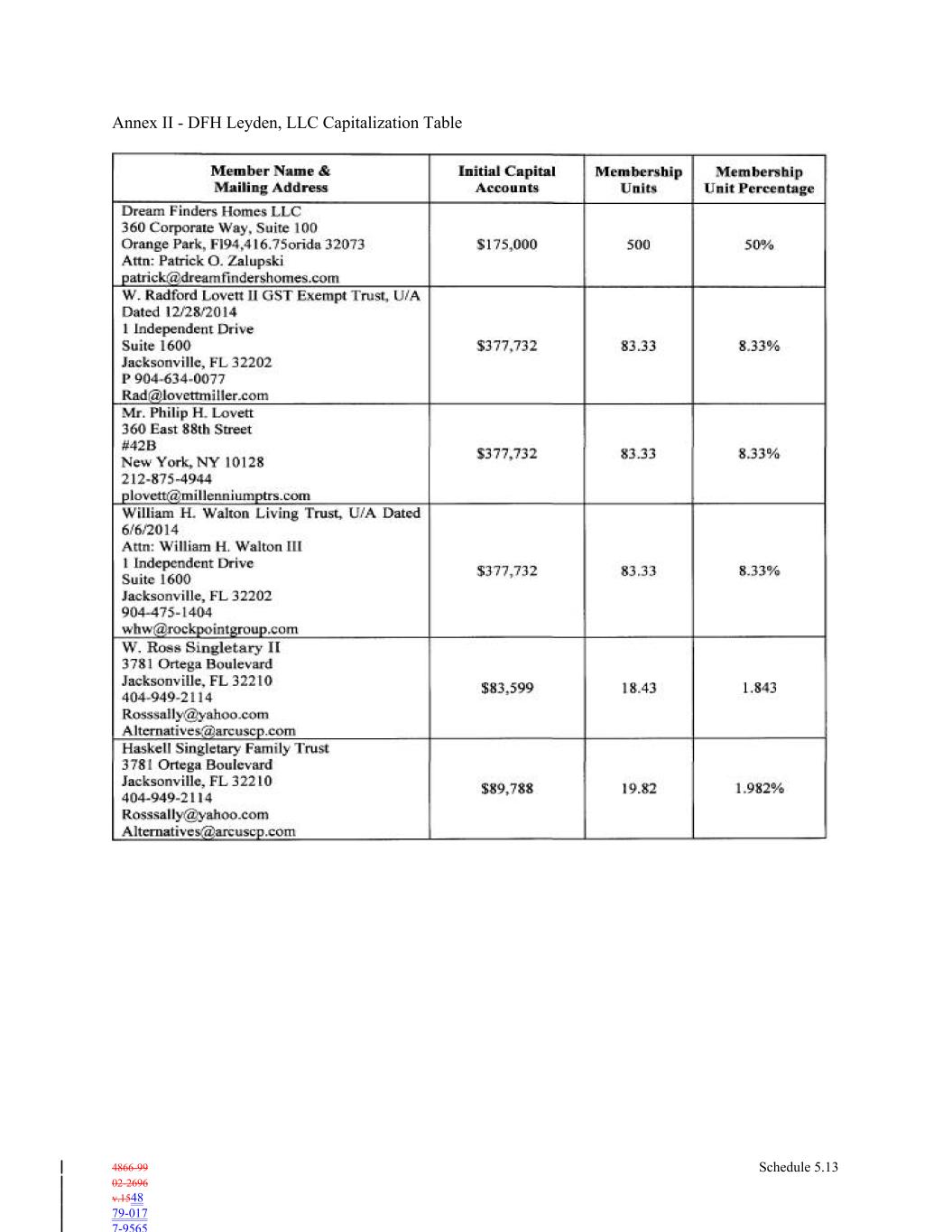 4866-99 02-2696 v.1548 79-017 7-9565 Schedule 5.13 Annex II - DFH Leyden, LLC Capitalization Table