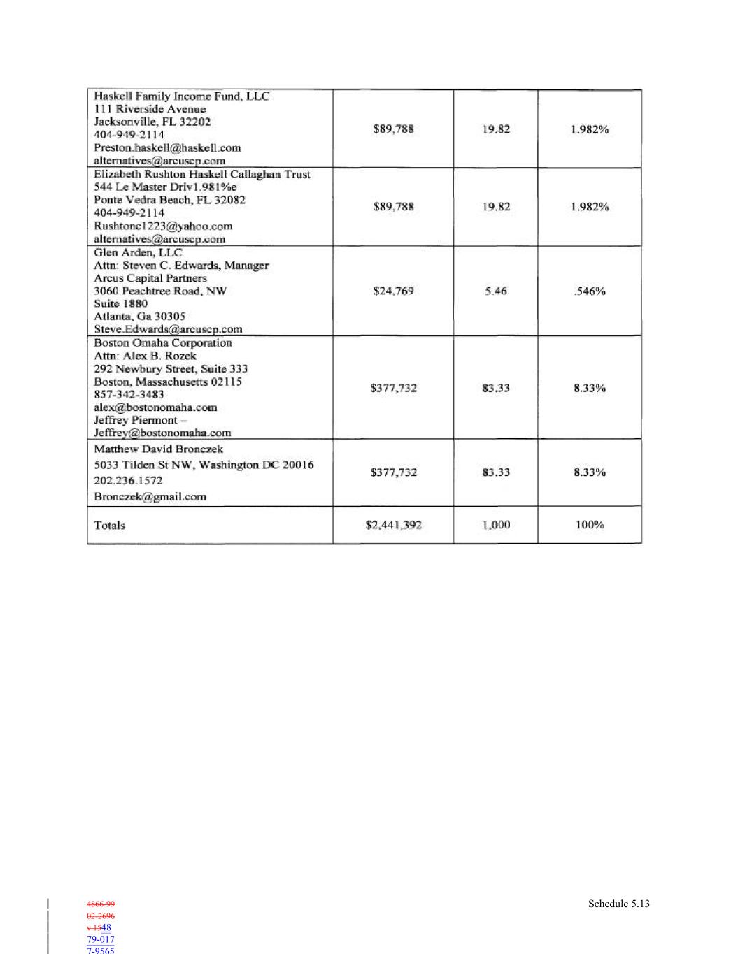4866-99 02-2696 v.1548 79-017 7-9565 Schedule 5.13 Annex IV - DFH Amelia, LLC Capitalization Table