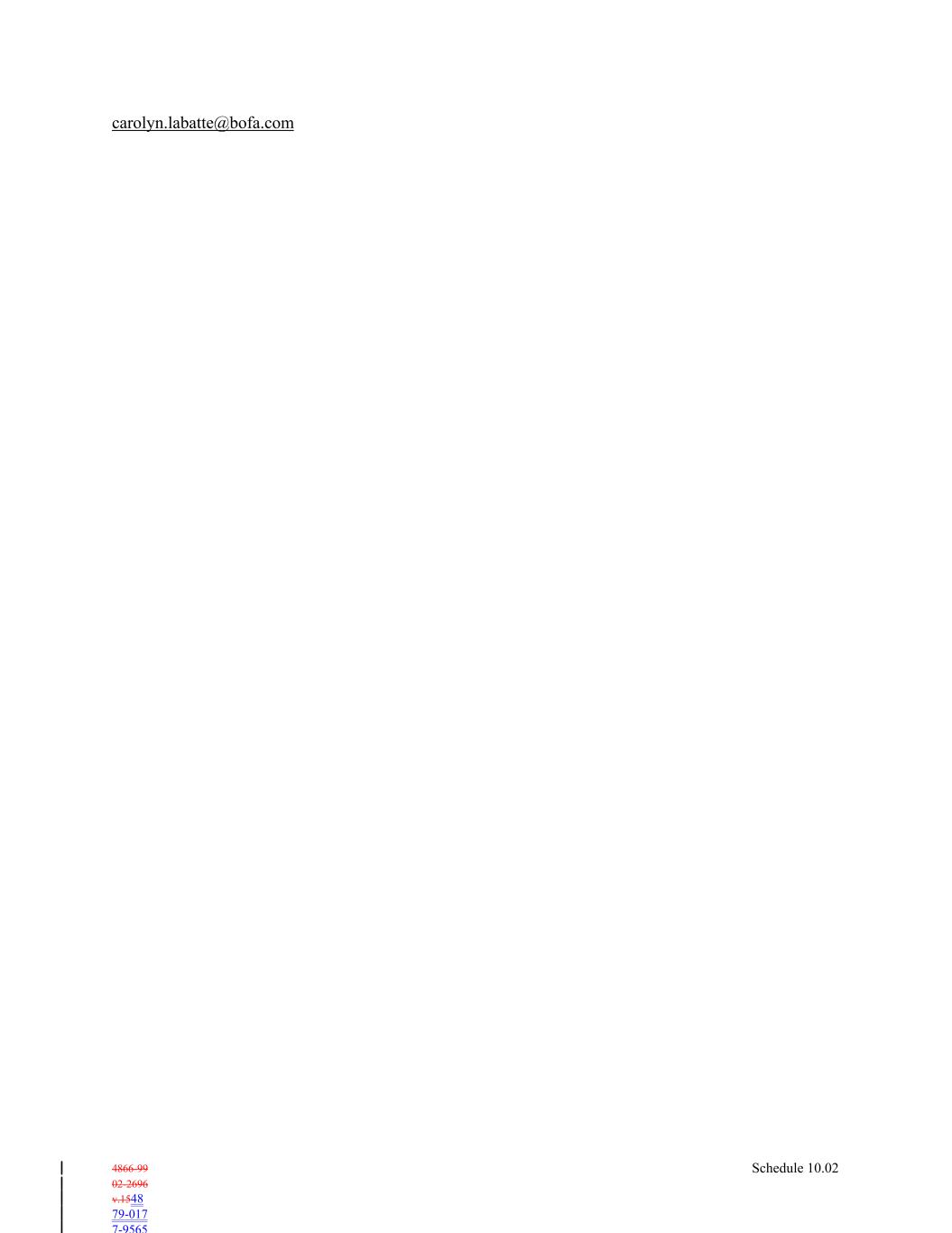 4866-99 02-2696 v.1548 79-017 7-9565 Schedule 10.02 carolyn.labatte@bofa.com