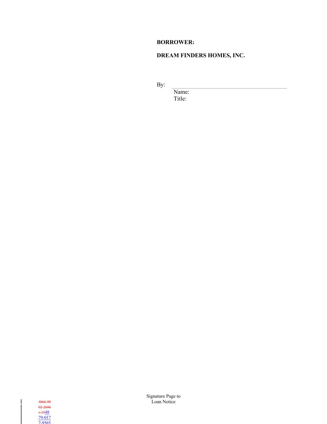 4866-99 02-2696 v.1548 79-017 7-9565 Signature Page to Loan Notice DREAM FINDERS HOMES, INC. Name: BORROWER: By: Title:
