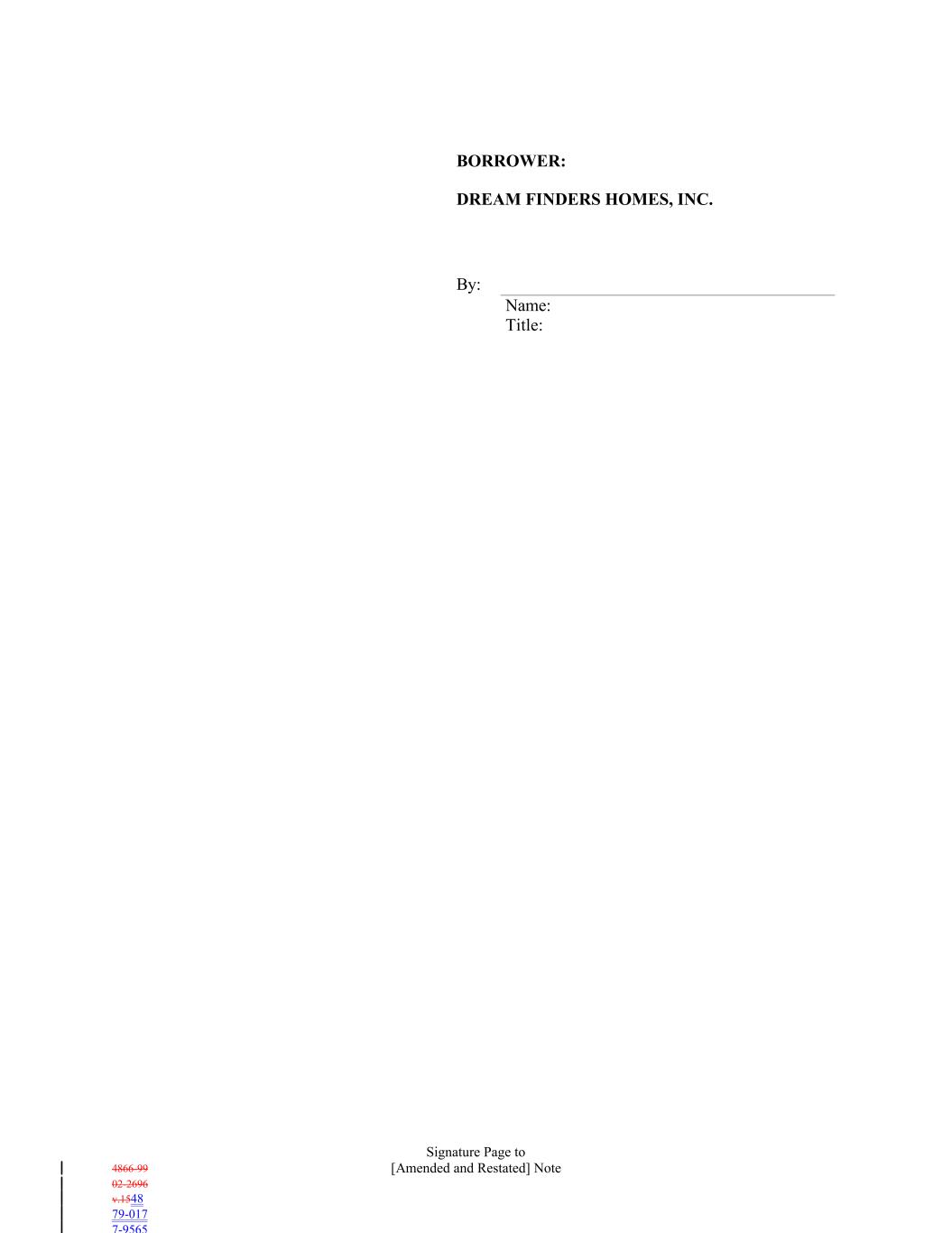 4866-99 02-2696 v.1548 79-017 7-9565 Signature Page to [Amended and Restated] Note Name: DREAM FINDERS HOMES, INC. Title: By: BORROWER: