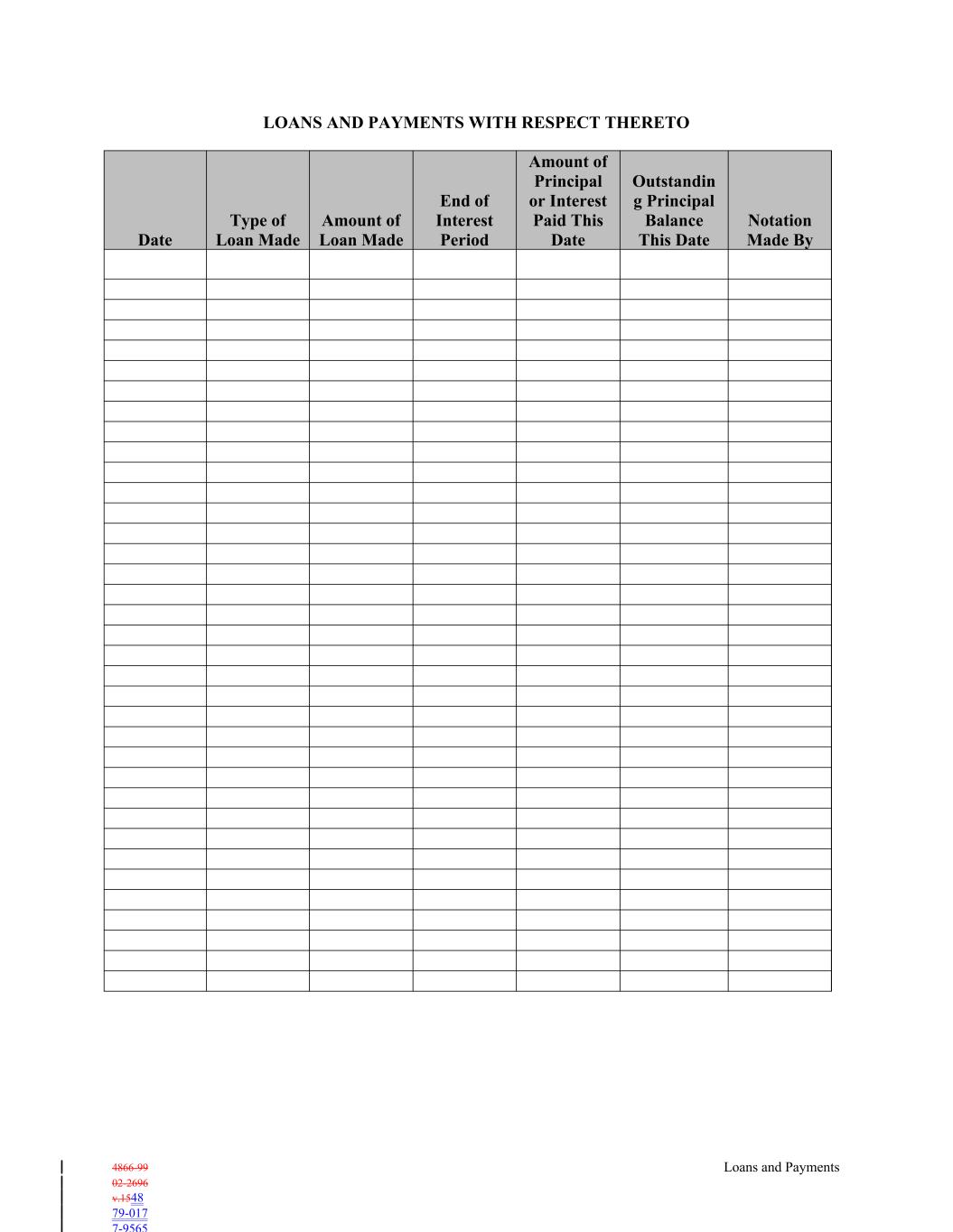 4866-99 02-2696 v.1548 79-017 7-9565 Loans and Payments Outstandin g Principal Balance This Date Notation Made By Type of Loan Made LOANS AND PAYMENTS WITH RESPECT THERETO Amount of Loan Made End of Interest Period Amount of Principal or Interest Paid This DateDate
