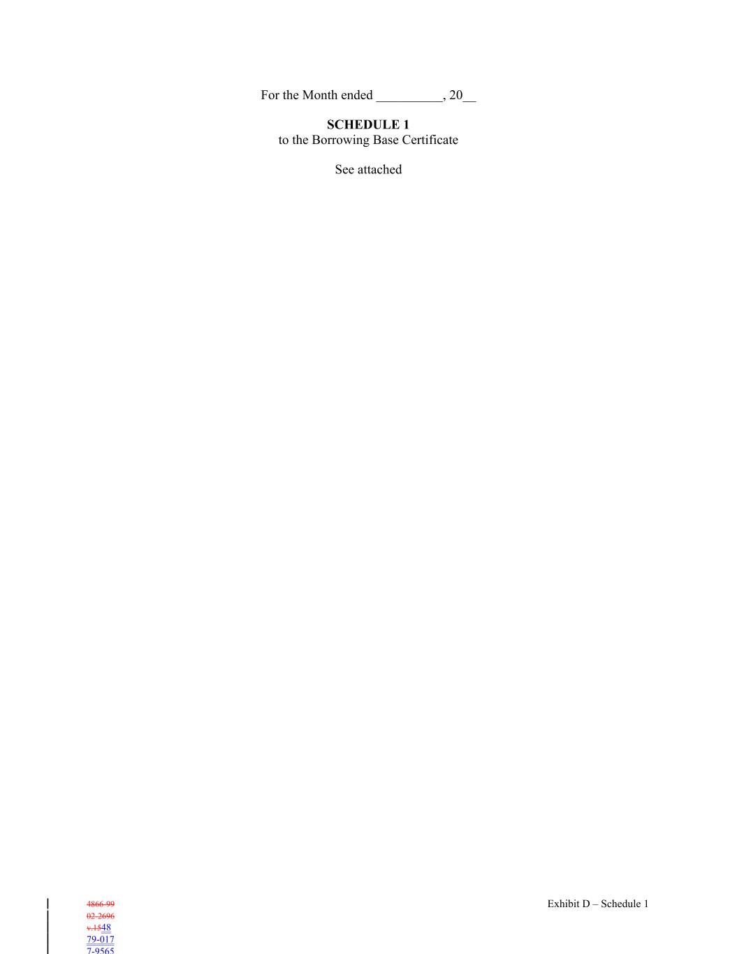 4866-99 02-2696 v.1548 79-017 7-9565 Exhibit D – Schedule 1 For the Month ended __________, 20__ SCHEDULE 1 to the Borrowing Base Certificate See attached