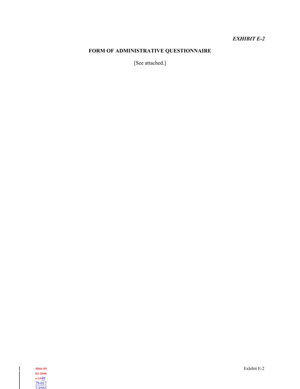 4866-99 02-2696 v.1548 79-017 7-9565 Exhibit E-2 EXHIBIT E-2 FORM OF ADMINISTRATIVE QUESTIONNAIRE [See attached.]