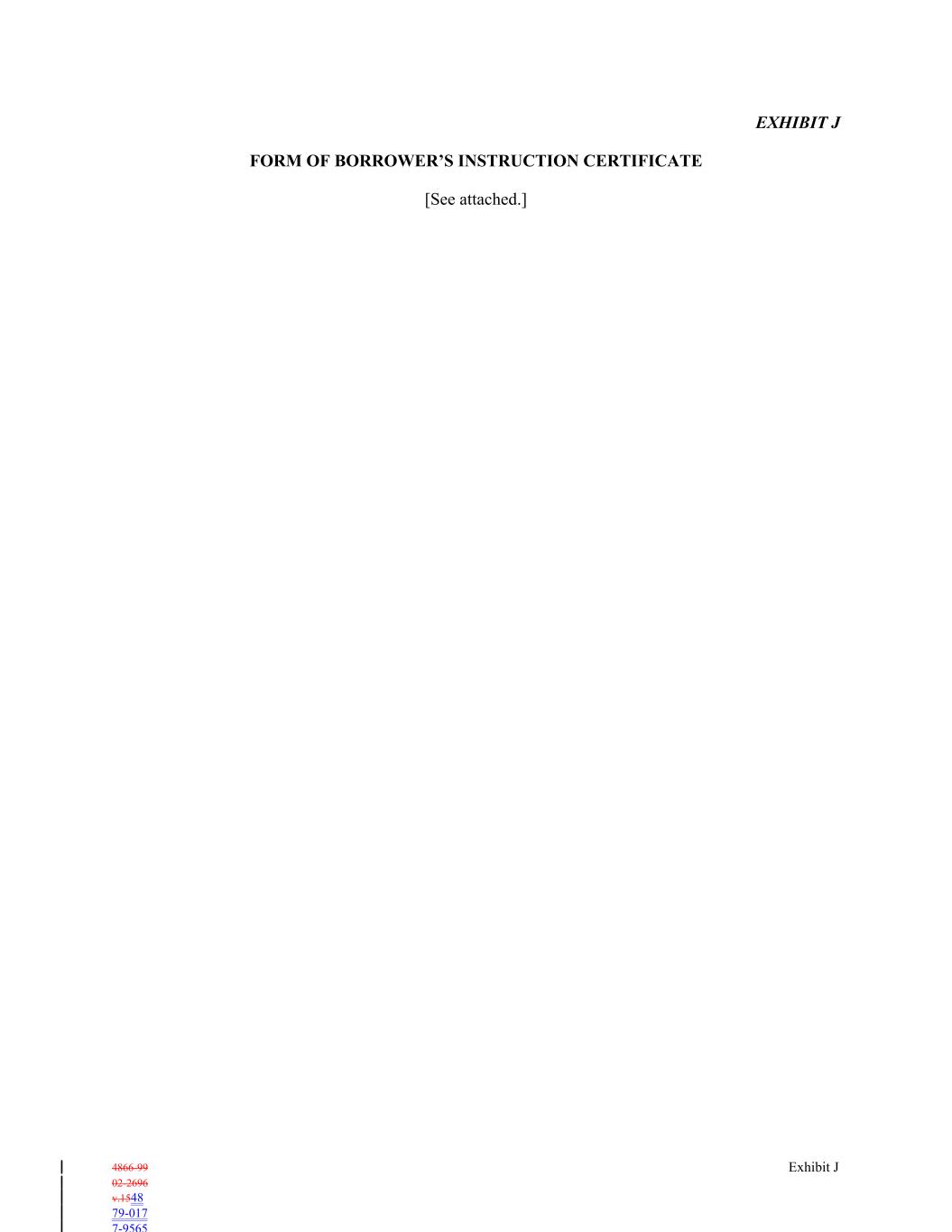 4866-99 02-2696 v.1548 79-017 7-9565 Exhibit J EXHIBIT J FORM OF BORROWER’S INSTRUCTION CERTIFICATE [See attached.]