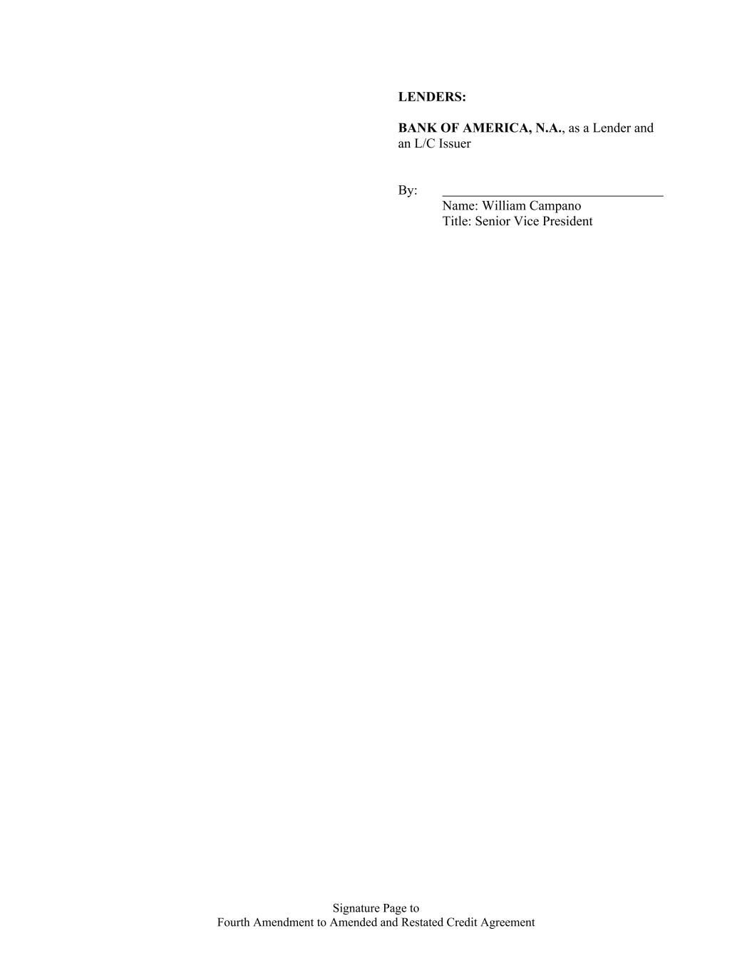 Signature Page to Fourth Amendment to Amended and Restated Credit Agreement LENDERS: BANK OF AMERICA, N.A., as a Lender and an L/C Issuer By: Name: William Campano Title: Senior Vice President
