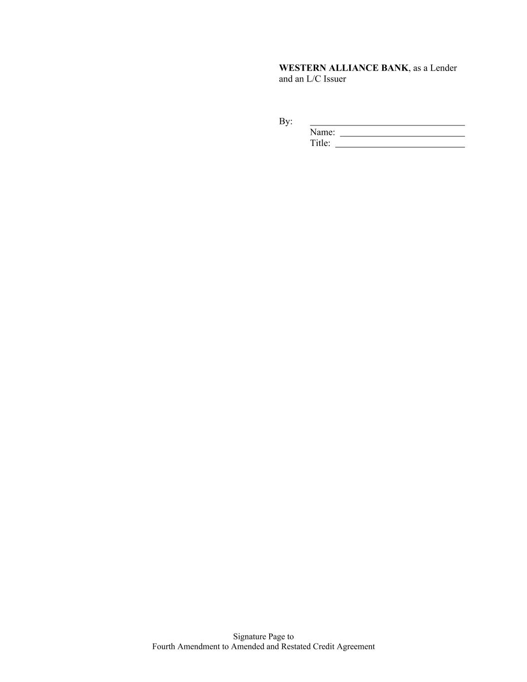 Signature Page to Fourth Amendment to Amended and Restated Credit Agreement WESTERN ALLIANCE BANK, as a Lender and an L/C Issuer By: Name: Title:
