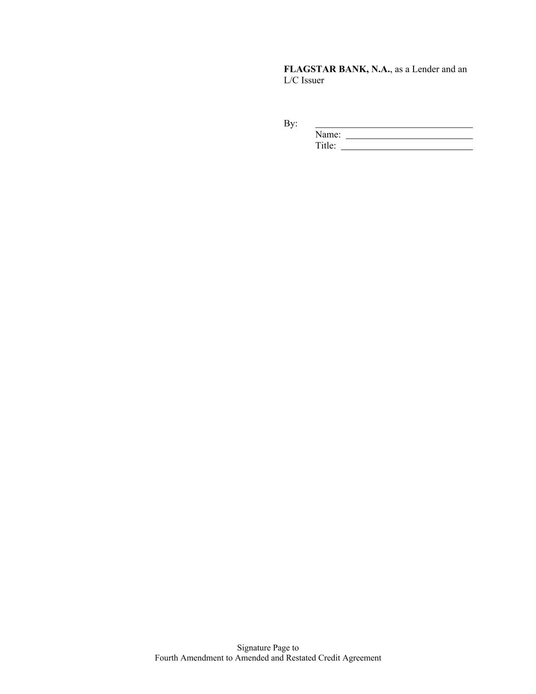 Signature Page to Fourth Amendment to Amended and Restated Credit Agreement FLAGSTAR BANK, N.A., as a Lender and an L/C Issuer By: Name: Title: