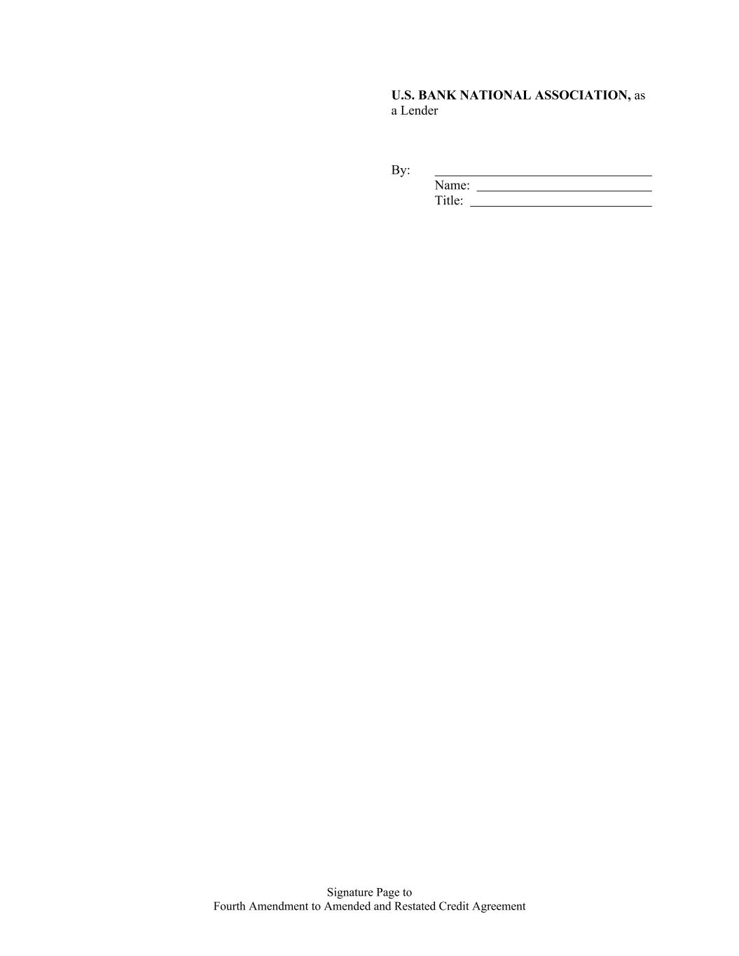 Signature Page to Fourth Amendment to Amended and Restated Credit Agreement U.S. BANK NATIONAL ASSOCIATION, as a Lender By: Name: Title: