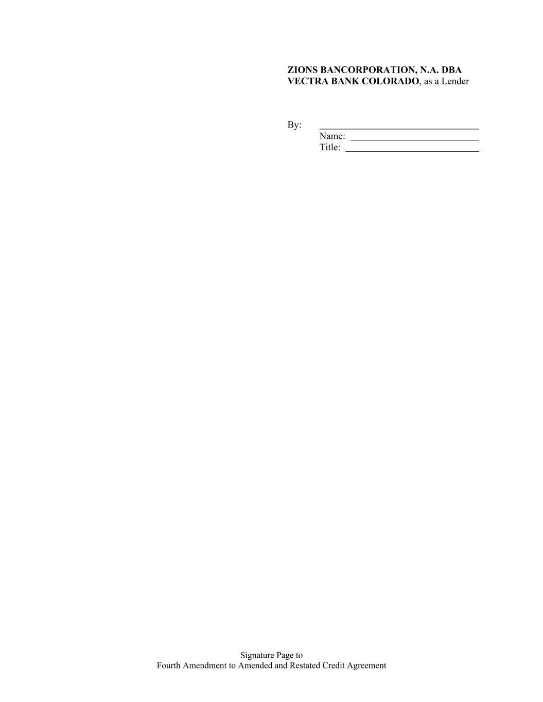 Signature Page to Fourth Amendment to Amended and Restated Credit Agreement ZIONS BANCORPORATION, N.A. DBA VECTRA BANK COLORADO, as a Lender By: Name: Title: