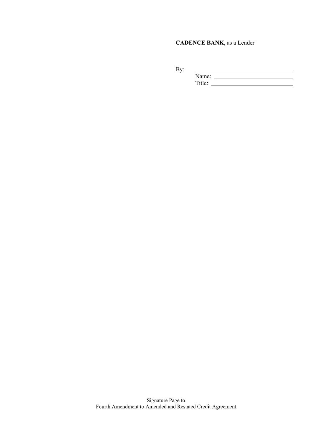 Signature Page to Fourth Amendment to Amended and Restated Credit Agreement CADENCE BANK, as a Lender By: Name: Title: