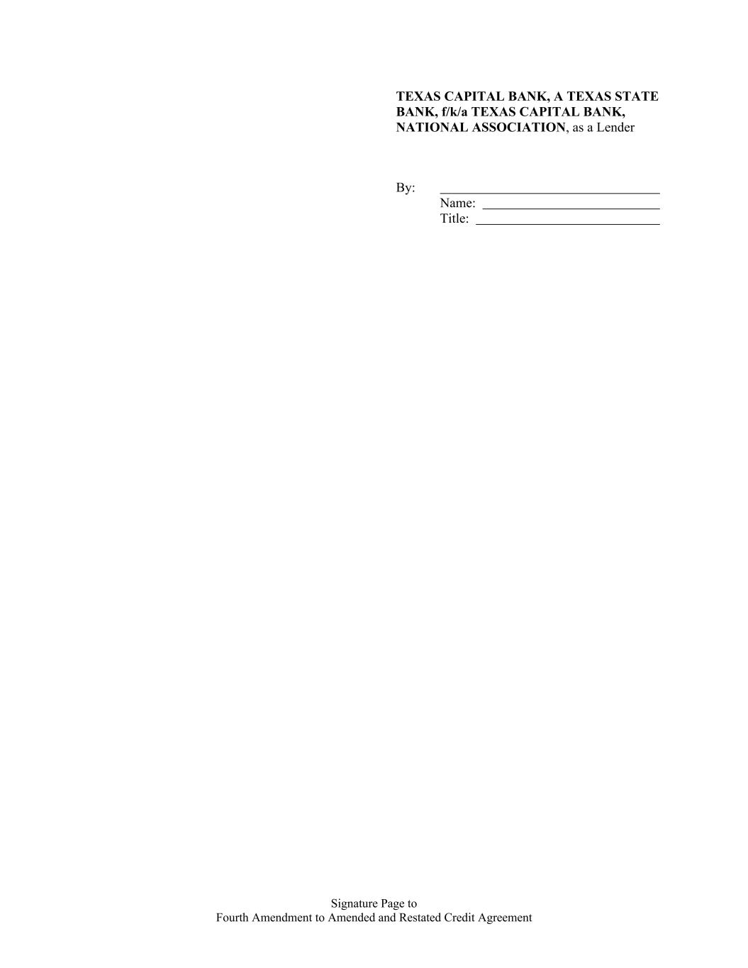 Signature Page to Fourth Amendment to Amended and Restated Credit Agreement TEXAS CAPITAL BANK, A TEXAS STATE BANK, f/k/a TEXAS CAPITAL BANK, NATIONAL ASSOCIATION, as a Lender By: Name: Title:
