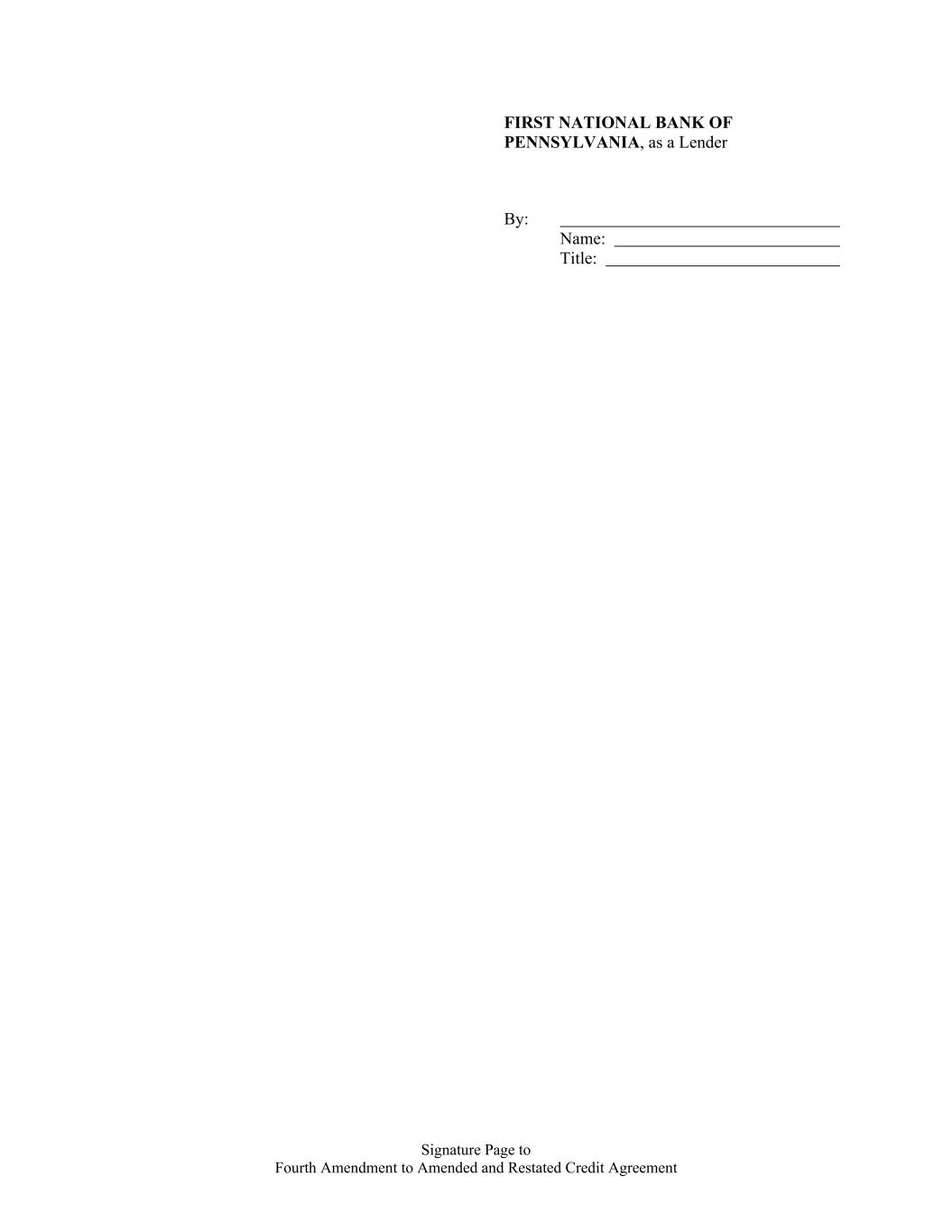 Signature Page to Fourth Amendment to Amended and Restated Credit Agreement FIRST NATIONAL BANK OF PENNSYLVANIA, as a Lender By: Name: Title: